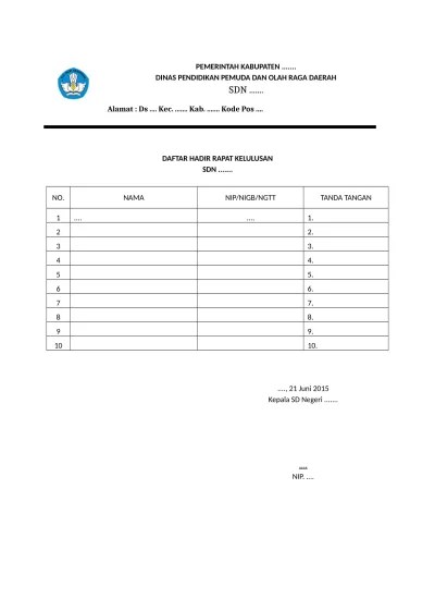 Download format daftar hadir rapat kegiatan peserta rapat ataupun peserta pelatihan siswa karyawan dan rapat dinas revisi terbaru 2018 doc sekolah ini yang .