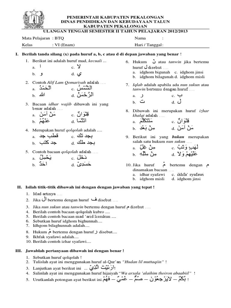 Kumpulan soal matematika smp kelas 7 semester 1 didno76 com. Soal uas btq bta kelas 1 2 3 mi semester 1 ganjil th. Soal btq kelas 3 sd semester 1 dan kunci jawaban soal mulok kelas 2 sd . Soal bta kelas 2 semester 2 pontren com. Feb 06, 2019 · soal uas btq / bta kelas 1 2 3 mi semester 1/ ganjil th.